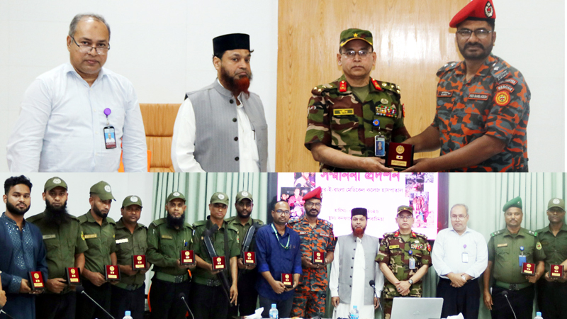 তিনি বলেন, গত ১৭ মার্চ রাতে অগ্নিকা-ের সময় অগ্নি নির্বাপনে কাজ করে হাসপাতালের স্টাফসহ আনসার সদস্যরা আহত হয়েছিল। তাই তাদের প্রতি সম্মাননা প্রদান করা হয়েছে।