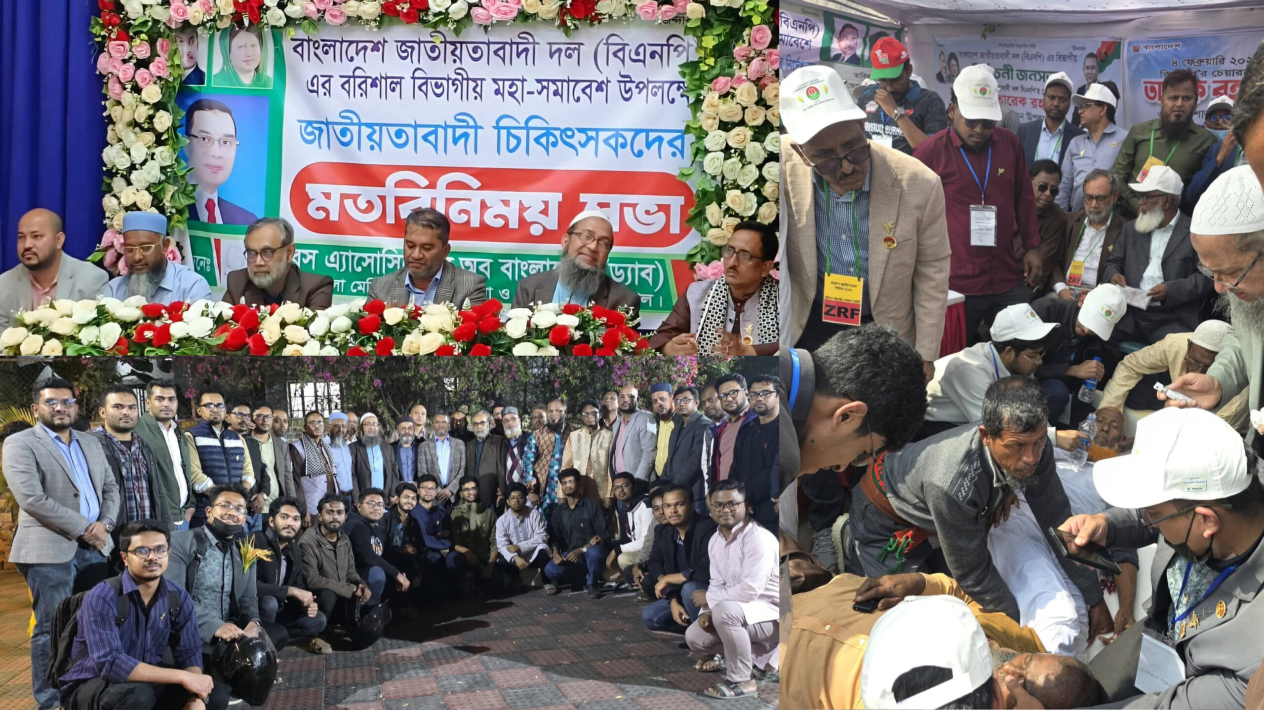 বিএনপির বরিশাল বিভাগীয় নির্বাচনী জনসভা উপলক্ষে ডক্টরস অ্যাসোসিয়েশন অব বাংলাদেশ (ড্যাব), শের-ই-বাংলা মেডিকেল কলেজ (এসবিএমসি) শাখা এবং জিয়াউর রহমান ফাউন্ডেশনের উদ্যোগে স্বাস্থ্যসেবা ক্যাম্প ও মতবিনিময় সভা অনুষ্ঠিত হয়েছে।