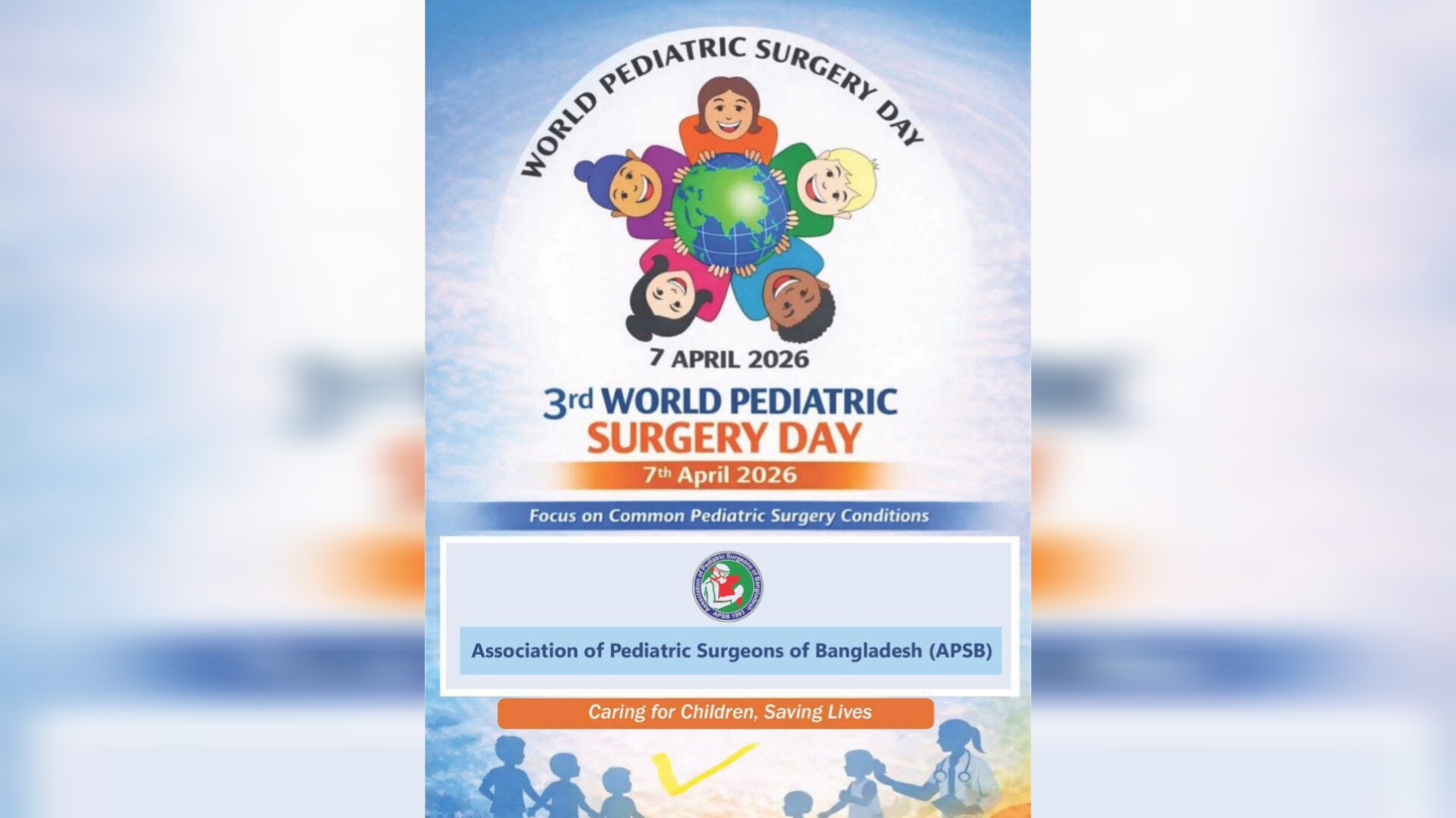 আয়োজকরা জানান, আন্তর্জাতিক শিশু সার্জারি দিবস উদযাপনের মাধ্যমে শিশুদের সার্জিক্যাল চিকিৎসার গুরুত্ব সম্পর্কে সচেতনতা বৃদ্ধি, মানসম্মত চিকিৎসা সেবা নিশ্চিতকরণ এবং শিশুদের সুস্বাস্থ্য রক্ষায় সংশ্লিষ্ট সবাইকে একযোগে কাজ করার আহ্বান জানানো হয়েছে।
