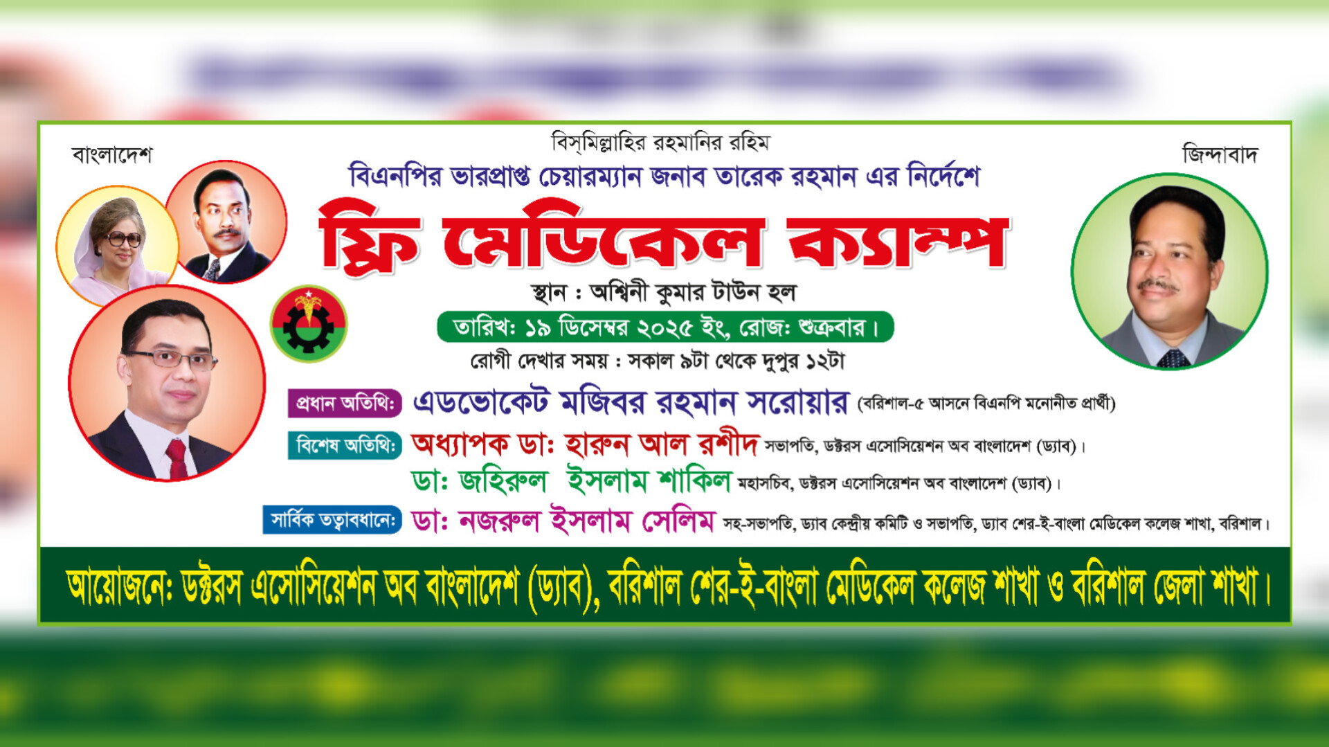 বরিশালে ড্যাবের উদ্যোগে ফ্রি মেডিকেল ক্যাম্প কাল