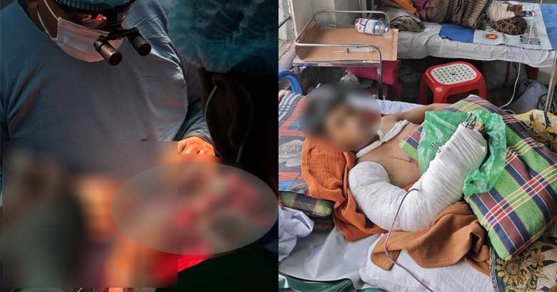 ডা. মণ্ডল জানান, রোগীর এক্সটেনসর টেন্ডন অস্ত্রোপচারের মাধ্যমে মেরামত এখনো বাকি আছে এবং এটি অতি দ্রুত সম্পন্ন করা হবে। অপারেশনে ৮-০ প্রোলিন সুতা ব্যবহার করে স্নায়ুর মেরামত করা হয়েছে এবং লুপ ও বুলডগ ক্ল্যাম্পের সাহায্যে ৮-০ প্রোলিন সুতা দিয়ে রক্তনালি সংযুক্ত করা হয়েছে।
