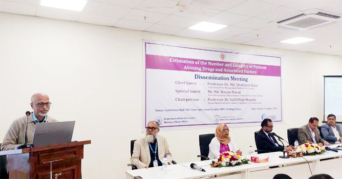 আজ রোববার (২৫ জানুয়ারি) বাংলাদেশ মেডিকেল বিশ্ববিদ্যালয়ের (বিএমইউ) সুপার স্পেশালাইজড হাসপাতালের কনফারেন্স হলে ‘বাংলাদেশে মাদক অপব্যবহারকারী ব্যক্তিদের সংখ্যা, ধরন ও সংশ্লিষ্ট কারণসমূহ’ শীর্ষক গবেষণার ফলাফল প্রকাশ অনুষ্ঠানে এসব তথ্য তুলে ধরা হয়।