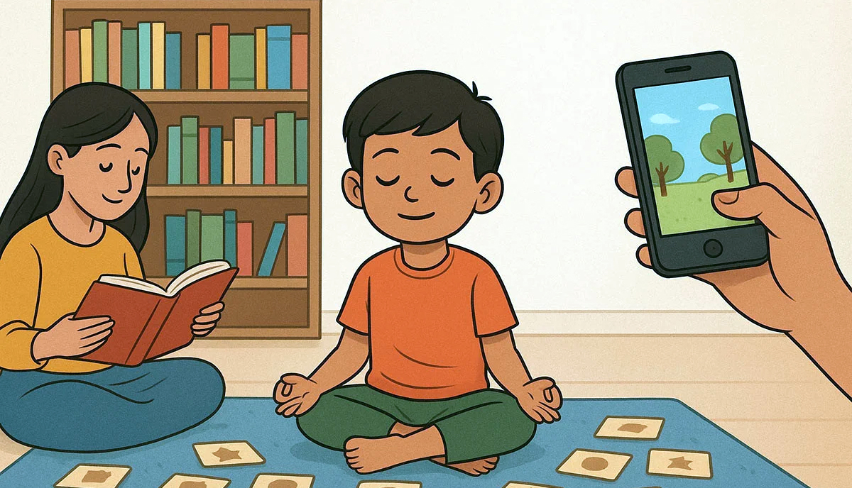 রাতের আগে অন্তত ১০ মিনিট ধ্যান বা মেডিটেশন করানো শিশুর জন্য উপকারী। প্রথমে শিশু চঞ্চল হবে, এক জায়গায় বসতে চাইবে না। কিন্তু ধীরে ধীরে অভ্যাস হলে ১০ মিনিট শান্ত হয়ে বসতে শিখবে। নিয়মিত ধ্যানের ফলে মনোযোগ ও একাগ্রতা বাড়ে, বুদ্ধির বিকাশ হয়, পড়াশোনায় মন বসে এবং নিজের লক্ষ্য স্থির করতে সক্ষম হয়।