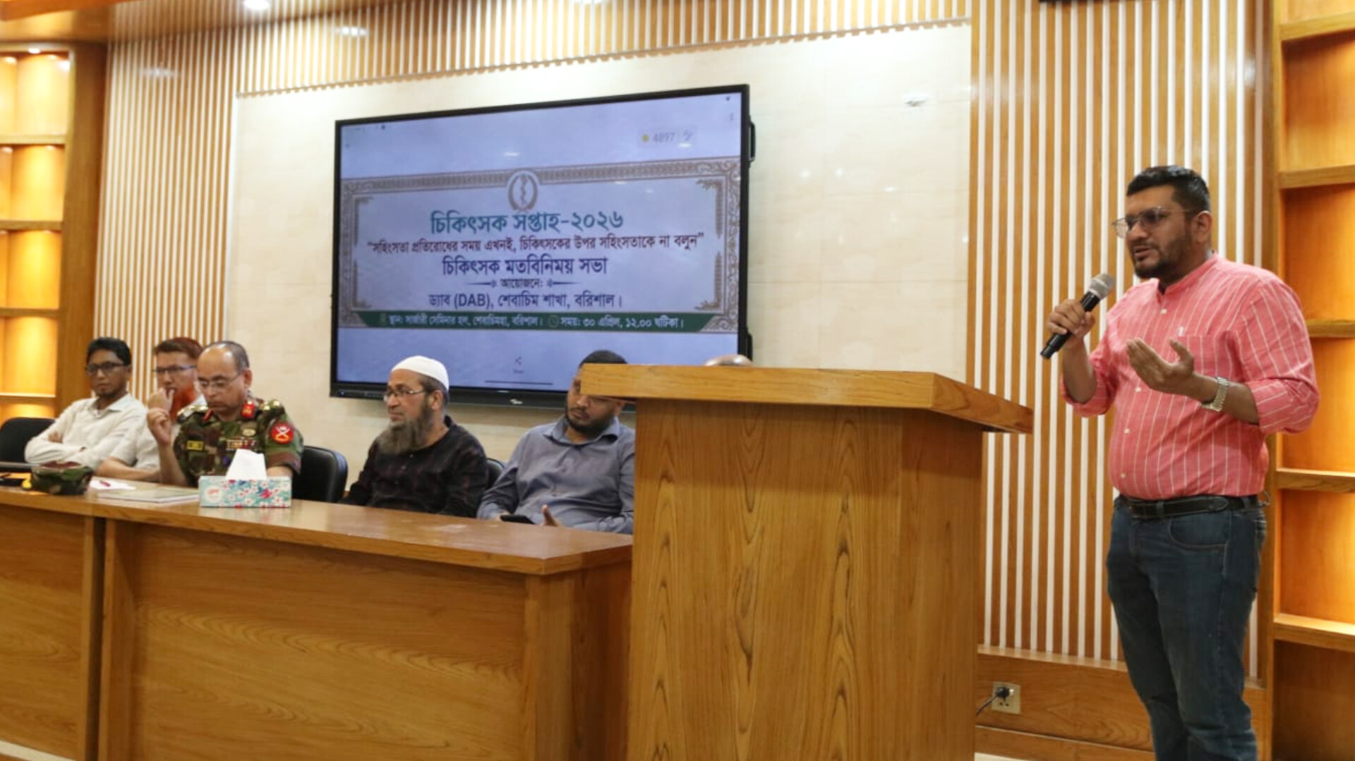 “চিকিৎসক সপ্তাহ,২০২৬; সহিংসতা প্রতিরোধের সময় এখনই, চিকিৎসকের উপর সহিংসতাকে না বলুন” এই স্লোগানকে সামনে রেখে বরিশাল শের ই বাংলা মেডিকেল কলেজ হাসপাতালে চিকিৎসক মতবিনিময় সভা অনুষ্ঠিত হয়েছে।