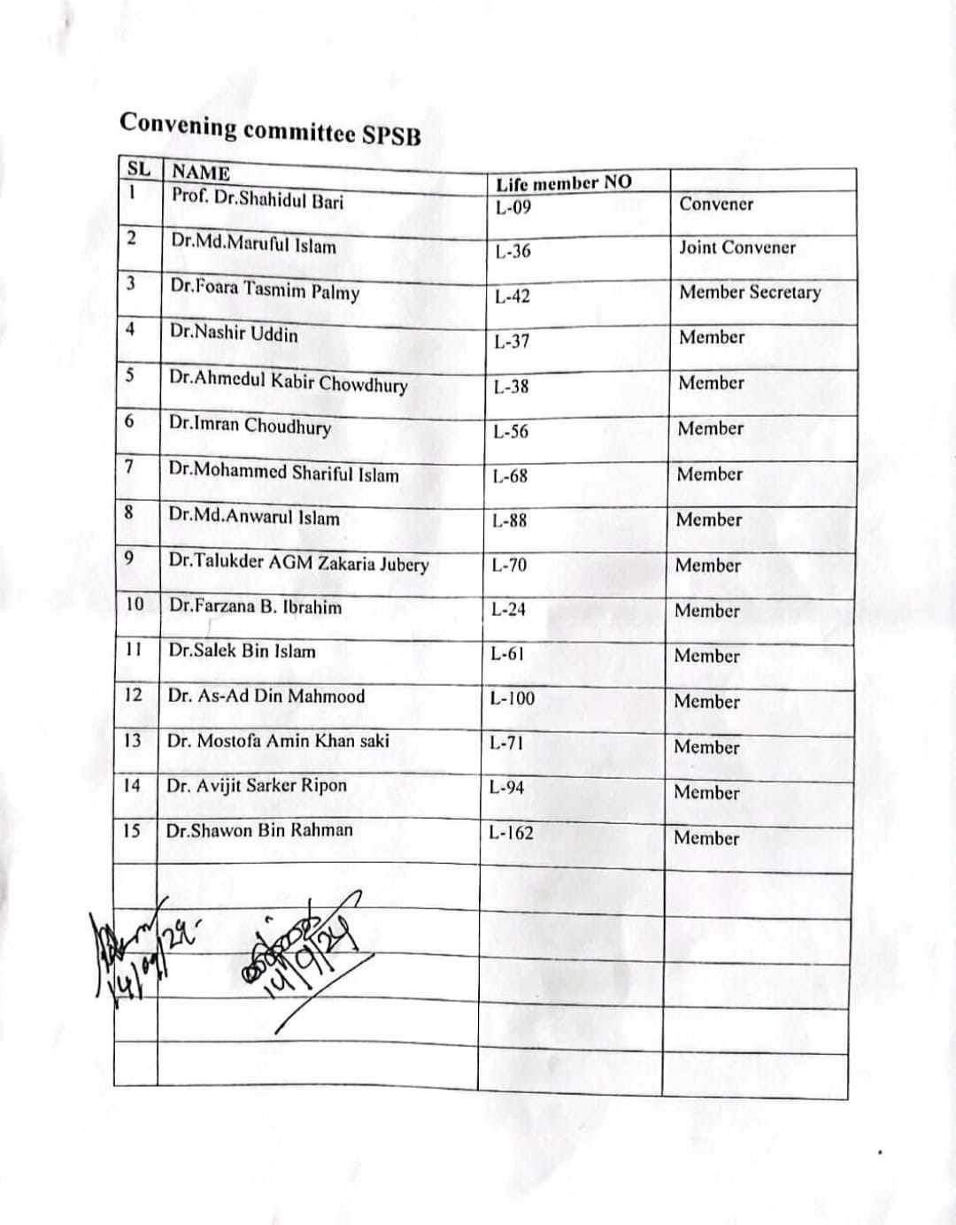 উক্ত মিটিংয়ে সর্বমোট ৯৪ জন সম্মানিত্ আজীবন সদস্যবৃন্দ অংশগ্রহণ করেন Iসভার শুরুতে পবিত্র কোরআন থেকে তেলাওয়াত পাঠ করা হয় I এরপরে বিগত কমিটির সম্মানিত সাধারণ সম্পাদক অধ্যাপক ডা: সাজ্জাদ খন্দকার স্যার বিগত কমিটির কিছু কার্যক্রম তুলে ধরেন এবং সবার সম্মতিক্রমে মেয়াদ উত্তীর্ণ বিগত কমিটিকে বিলুপ্ত ঘোষণা করা হয় I অধ্যাপক ডা: সাজ্জাদ খন্দকার স্যার আহবায়ক কমিটি গঠনের প্রস্তাব করেন।